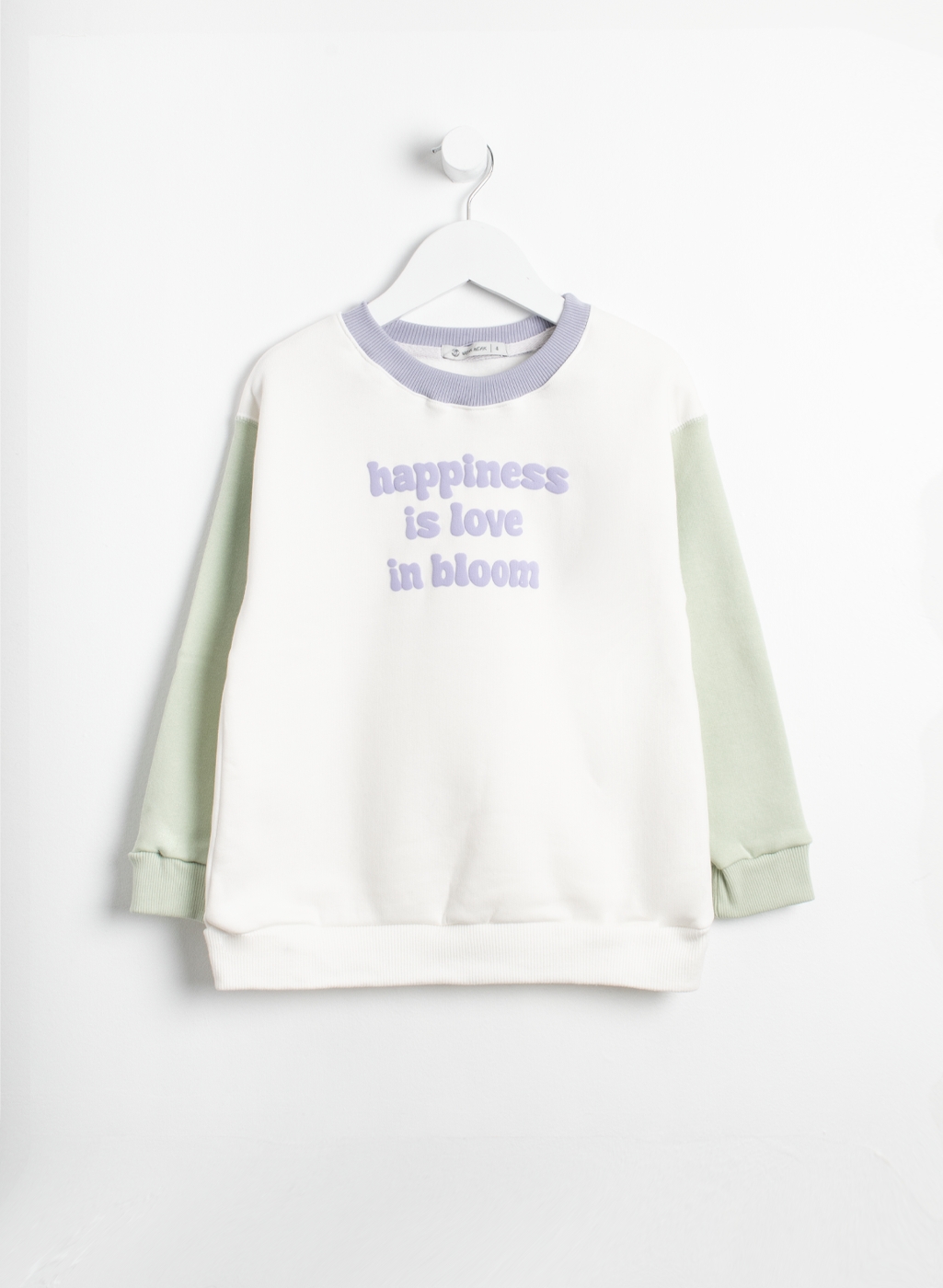 Buzo oversize de frisa cuello redondo con estampa central. Posee mangas combinadas a contratono