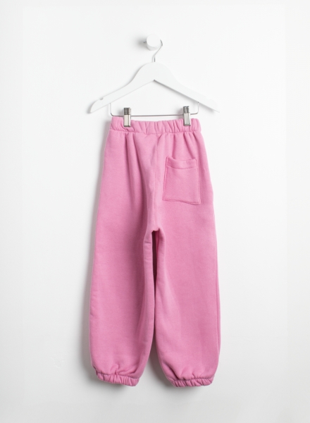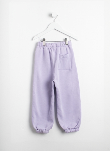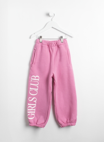 Jogging frisado tiro alto con puño. Modelo oversize, con estampa en una de las piernas.