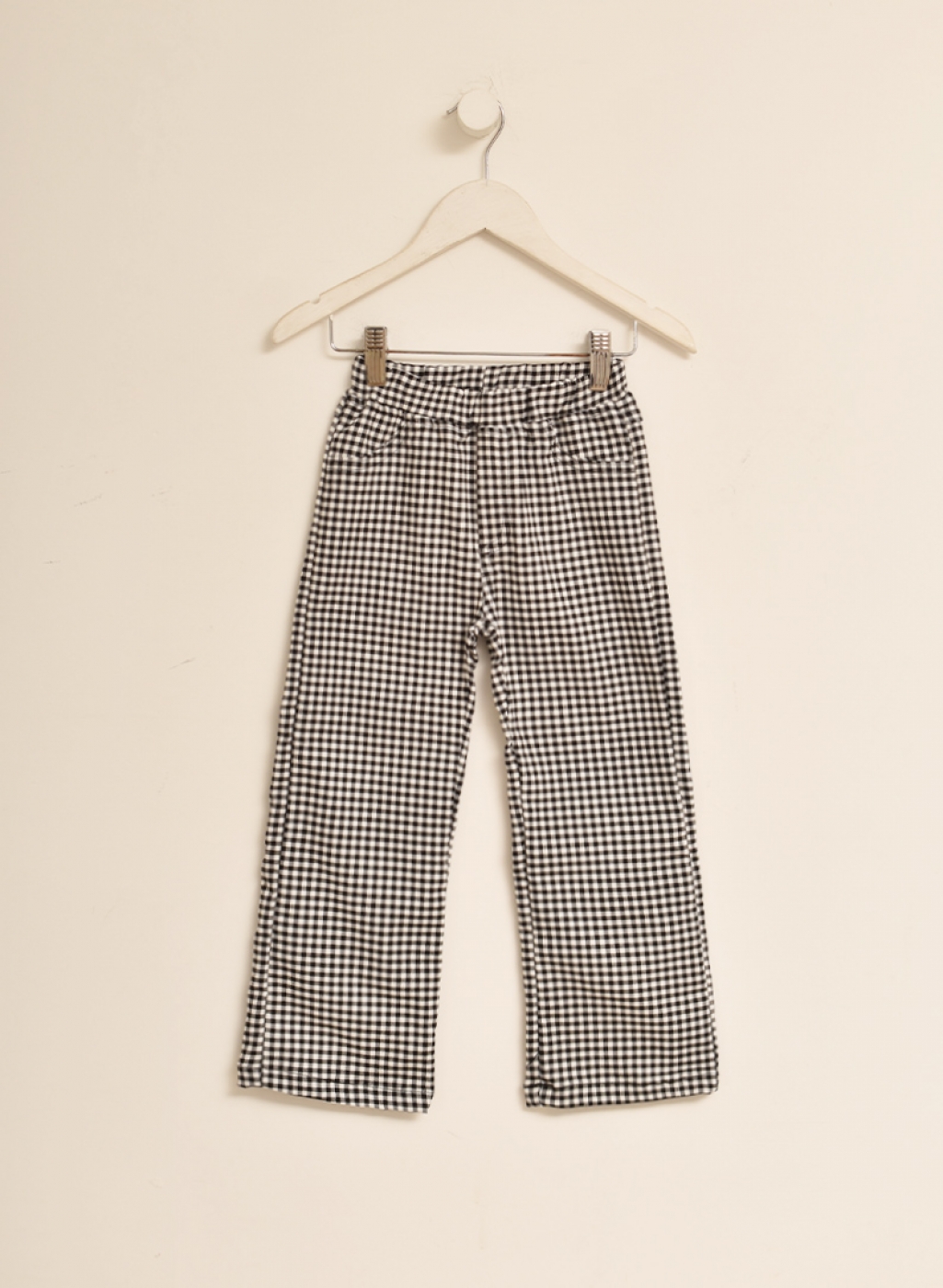 Pantalón en bengalina con elástico y bolsillos. Apto lavado a máquina.