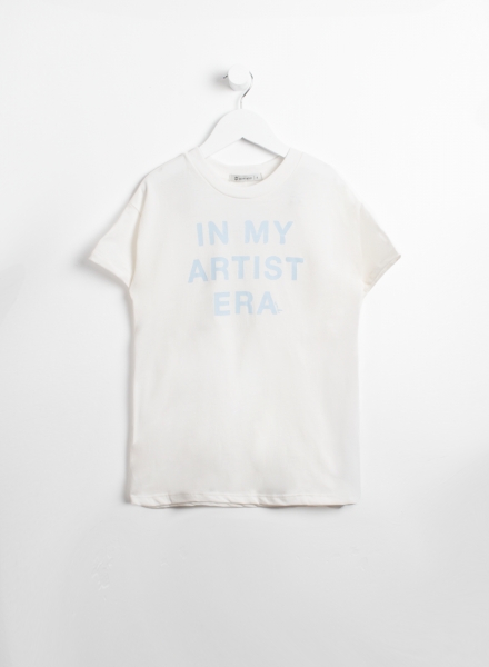 Remera oversize de jersey con estampa en la parte frontal. Cuello de ribb.