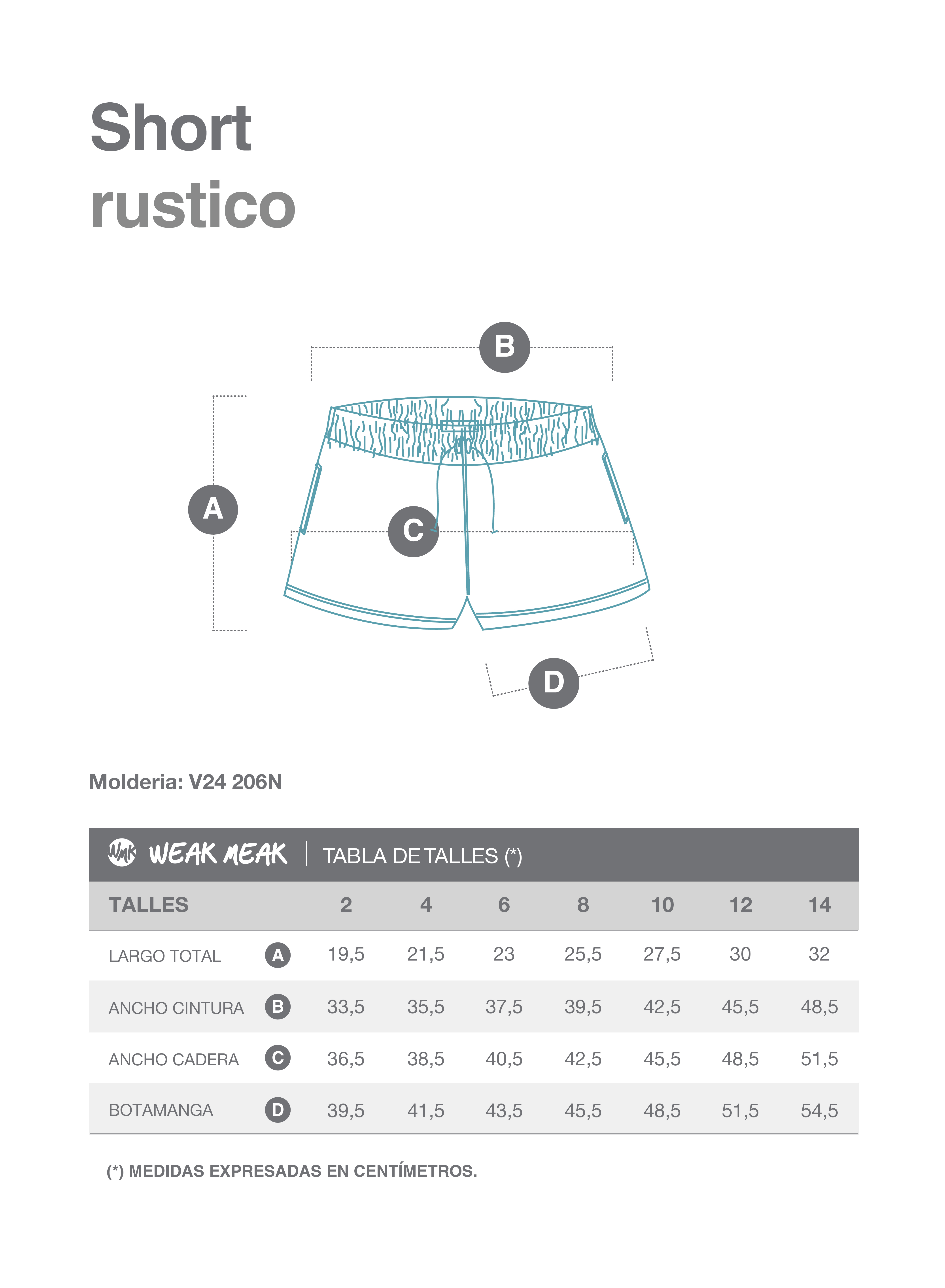 Short rustico con bolsillos laterales y uno en la parte de atrás. Cintura rebatida elastizada.
