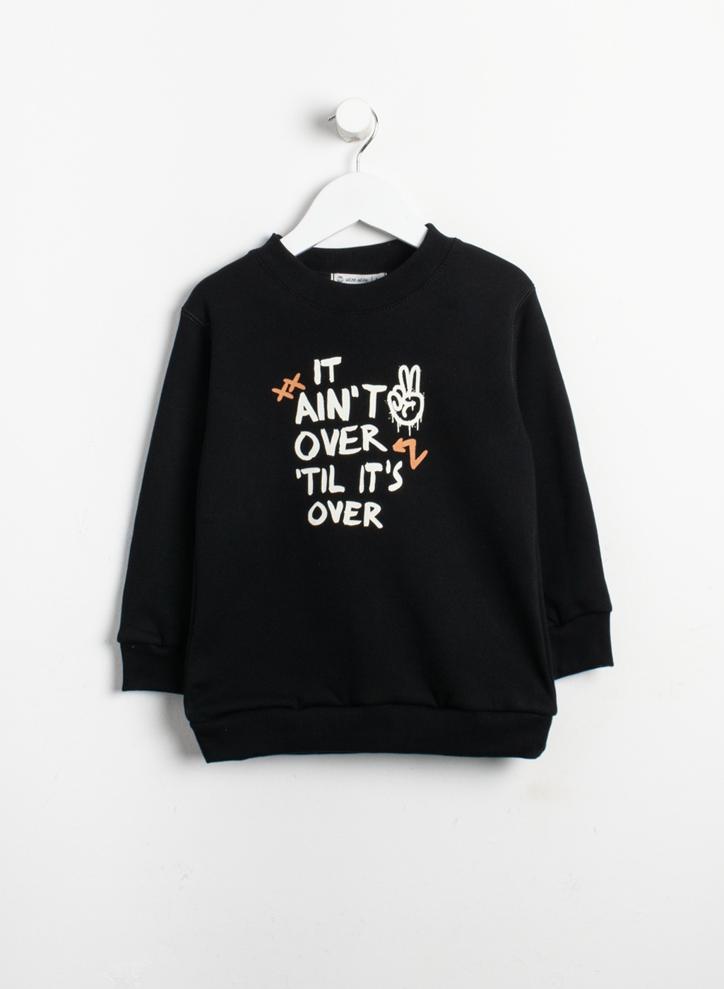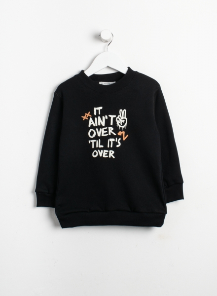 Buzo básico de frisa cuello redondo con estampa central.
