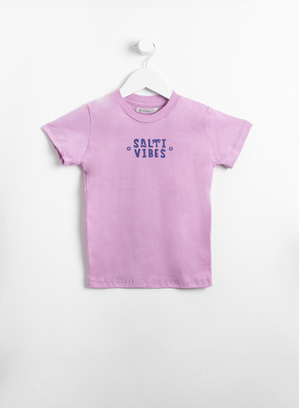 Remera manga corta de jersey con estampa central y cuello en ribb.