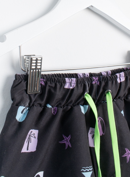 Short de baño estampado, con cordón para regular. Sin suspensor.