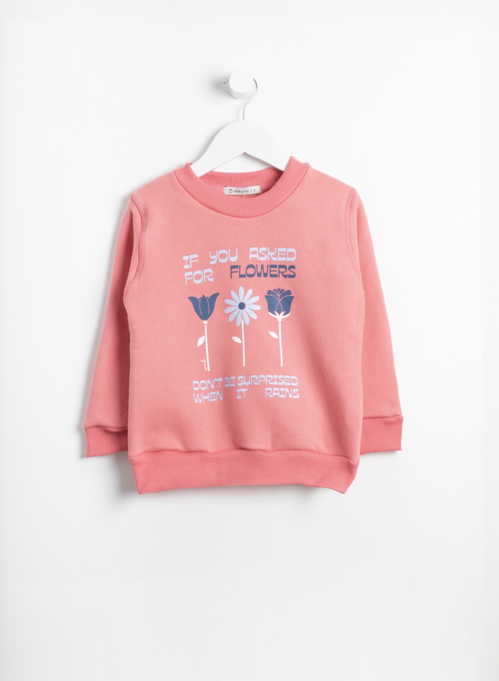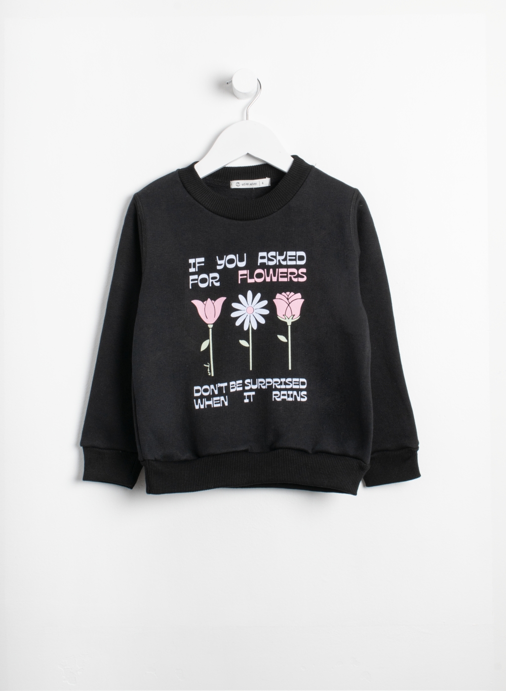 Buzo cuello redondo con estampa de flores, con puño y cuello de morley.