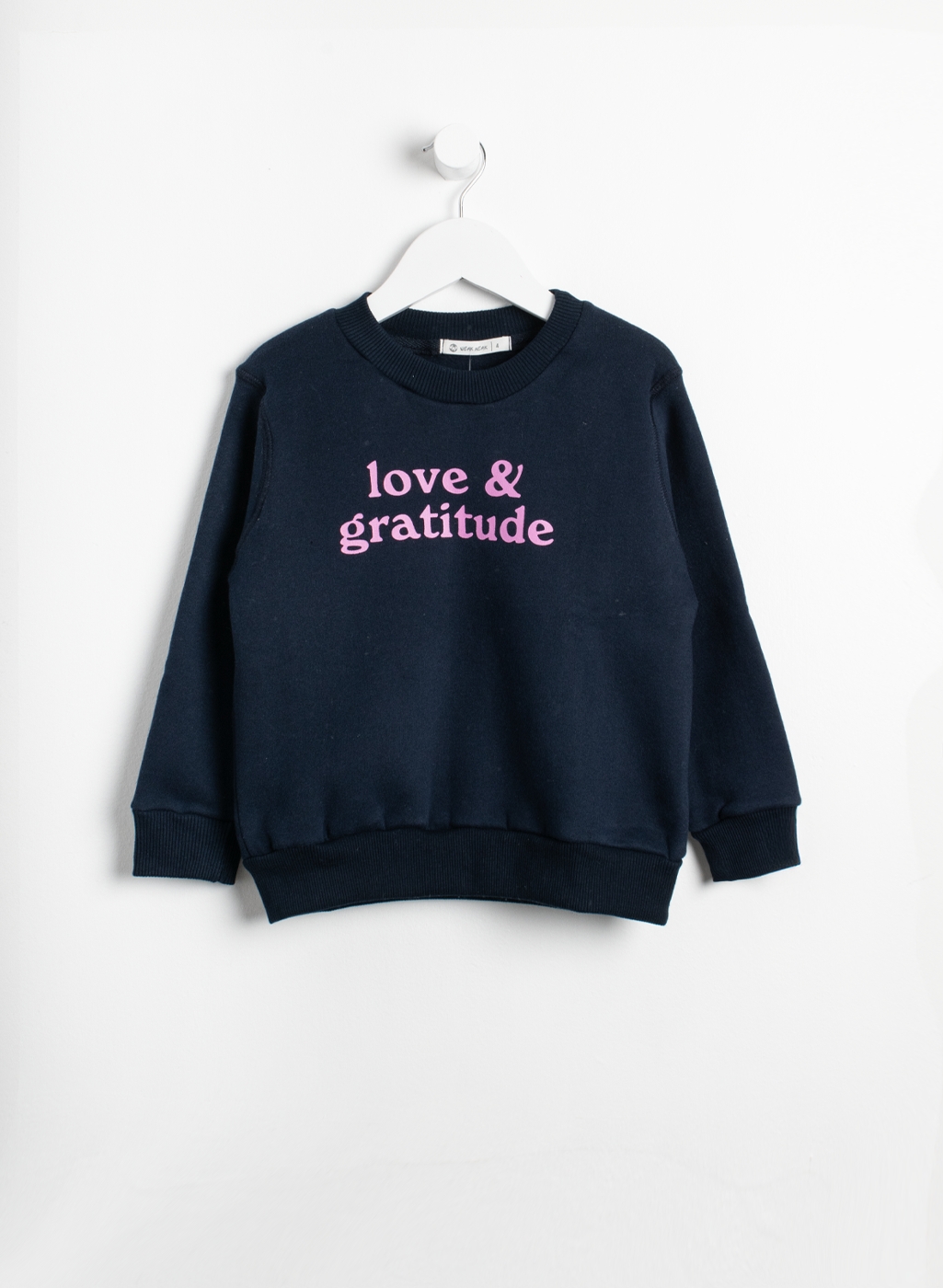 Buzo de frisa cuello redondo, con estampa central y terminación de morley