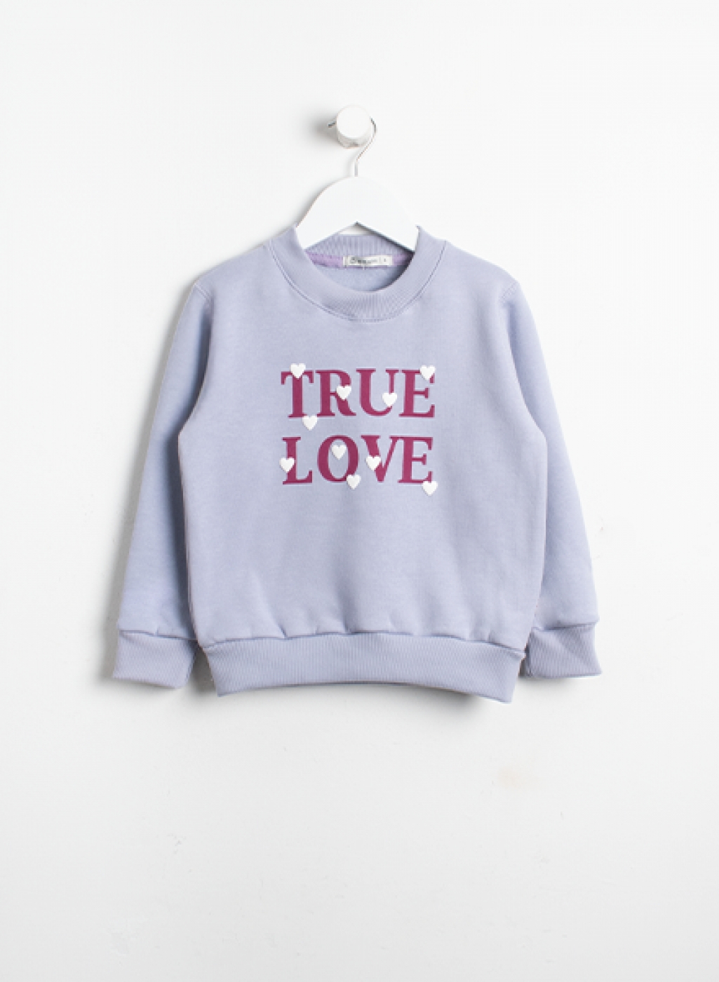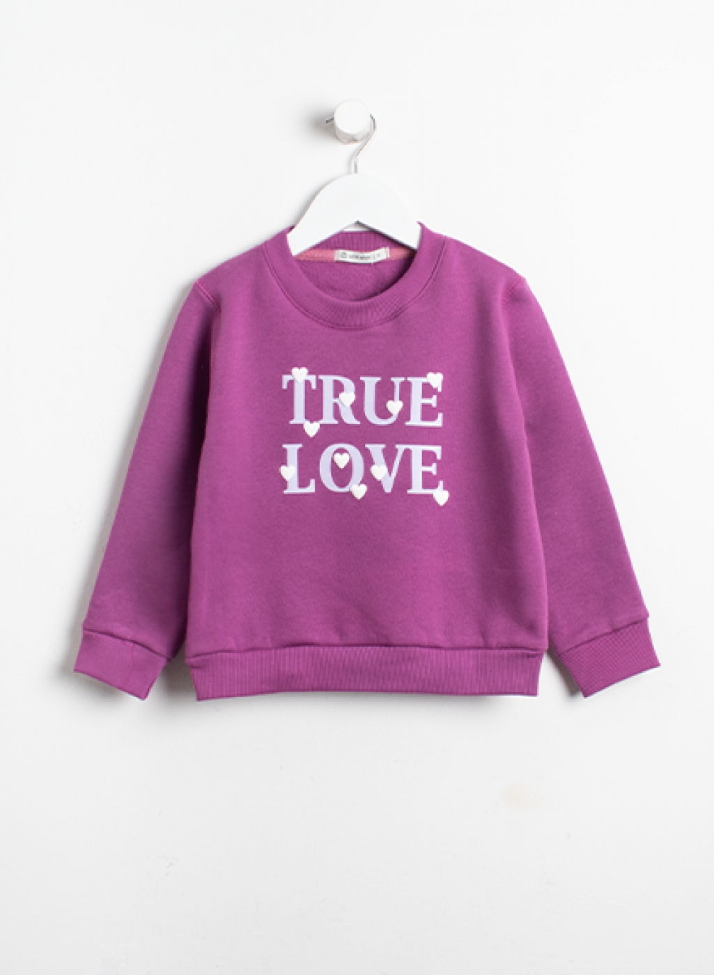 Buzo de frisa básico. Posee cuello redondo estampa central con relieve y terminación en puño de morley.