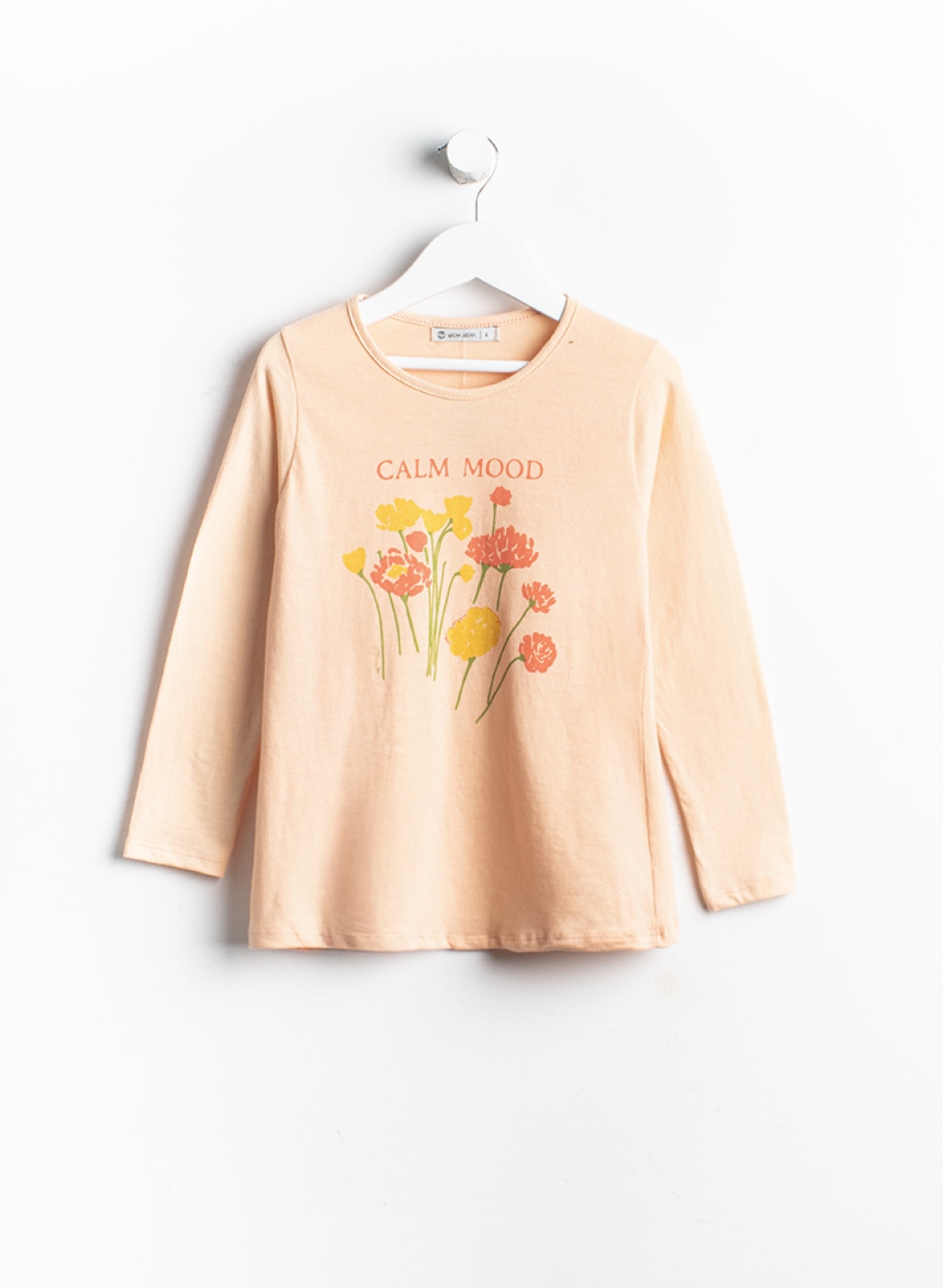 Remera básica, manga corta de jersey con estampa central. 100% algodón