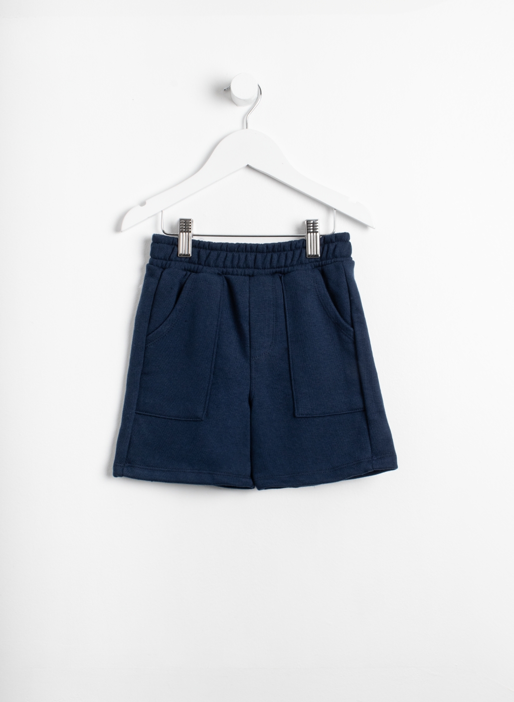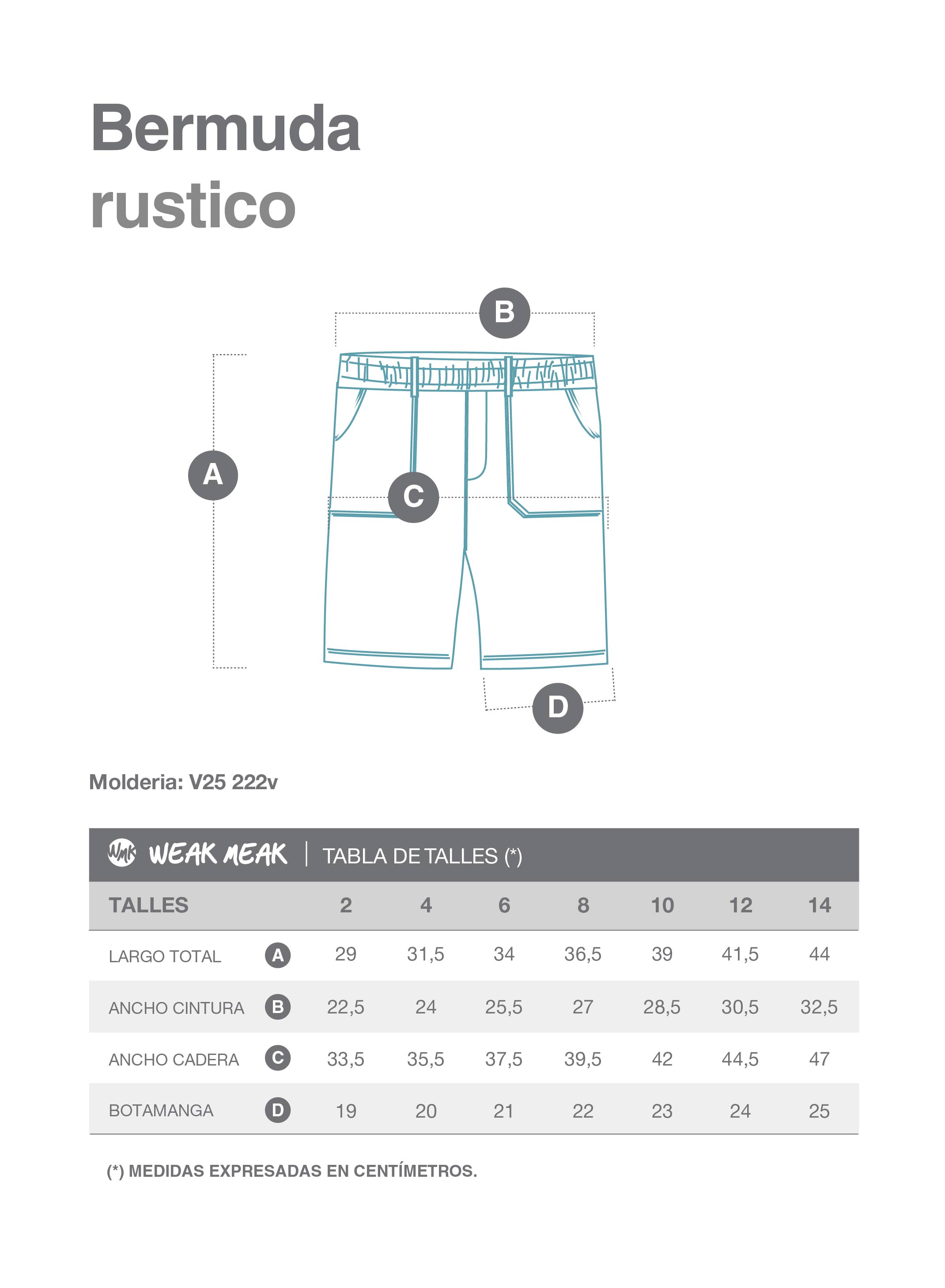Bermuda rústico de algodón, con bolsillos plaqué y elástico en cintura.
