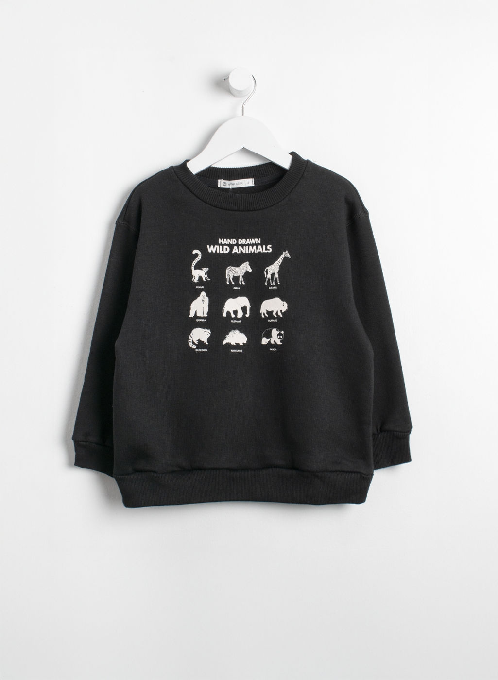 Buzo oversize de frisa cuello redondo con estampa central. Posee puños de morley