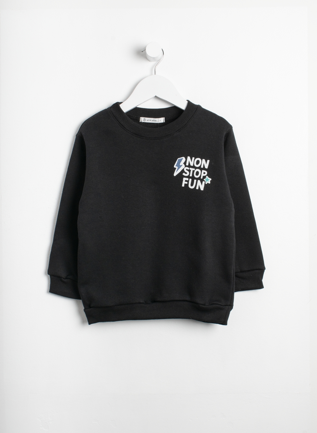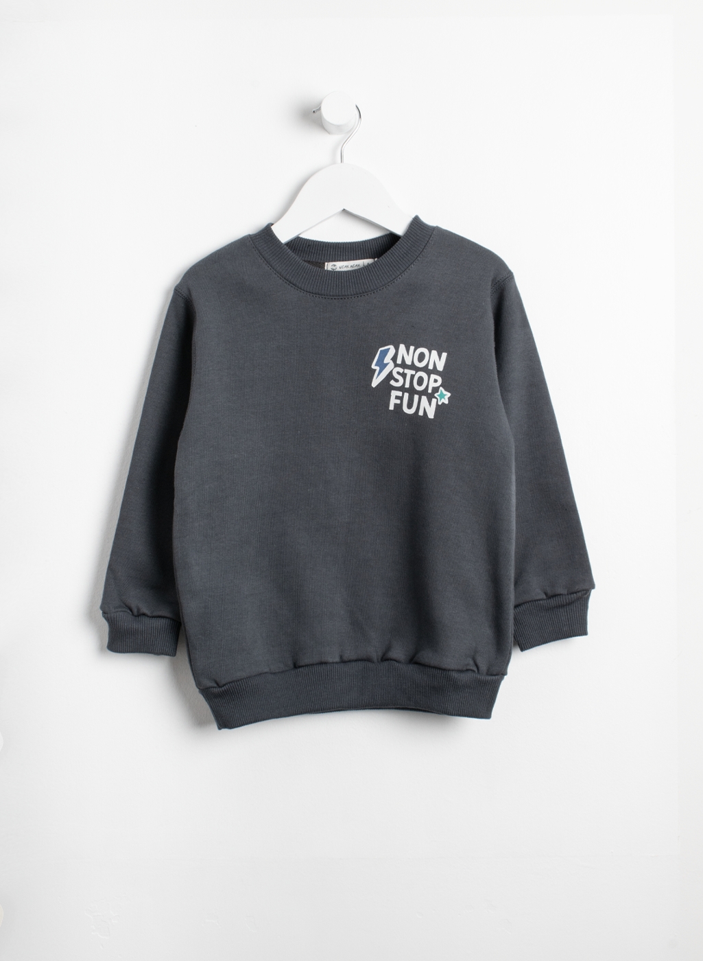 Buzo de frisa cuello redondo con pequeña estampa y puño de morley.