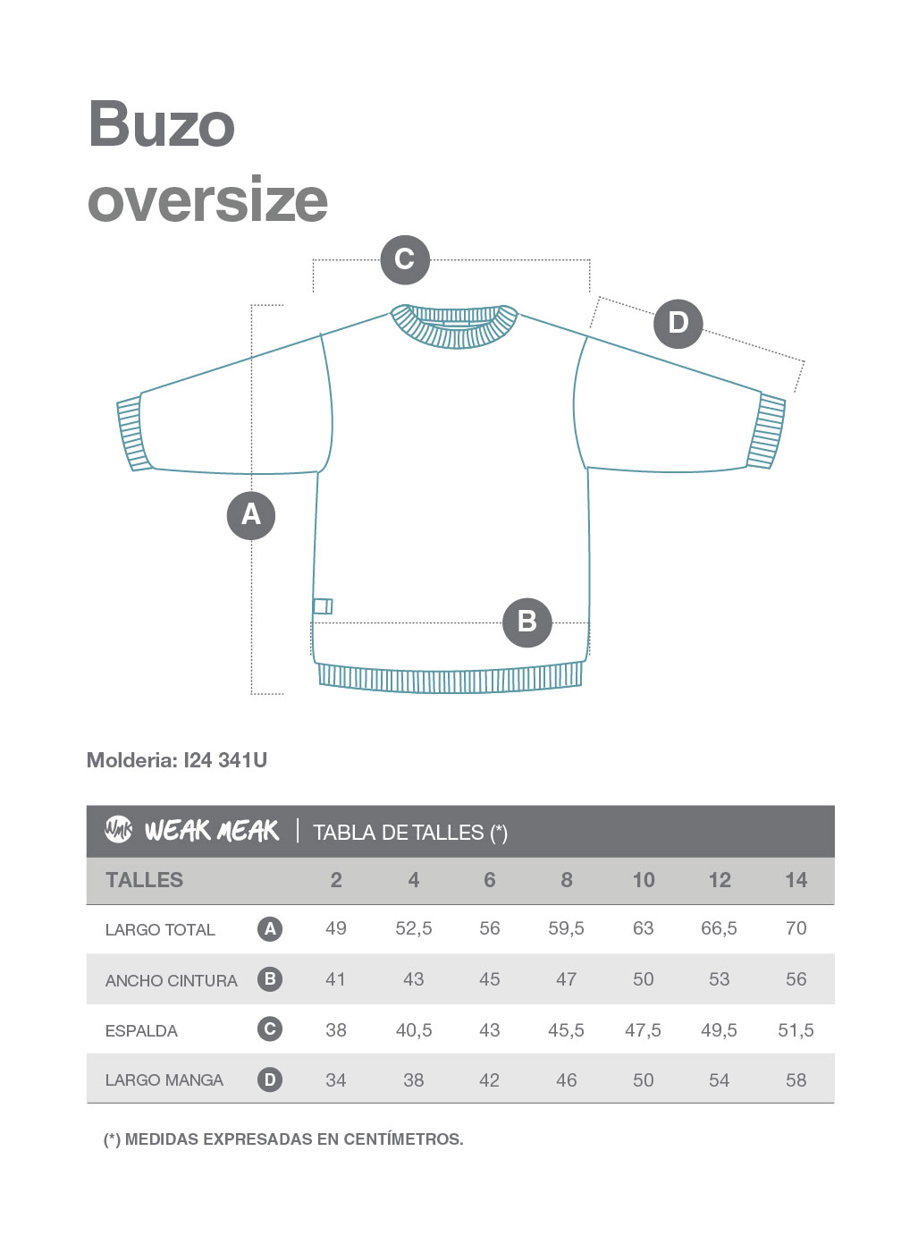 Buzo frisado oversize, cuello redondo con pequeña estampa. * Color petróleo corresponde a color azul violáceo. * Color bordo corresponde a violeta oscuro.