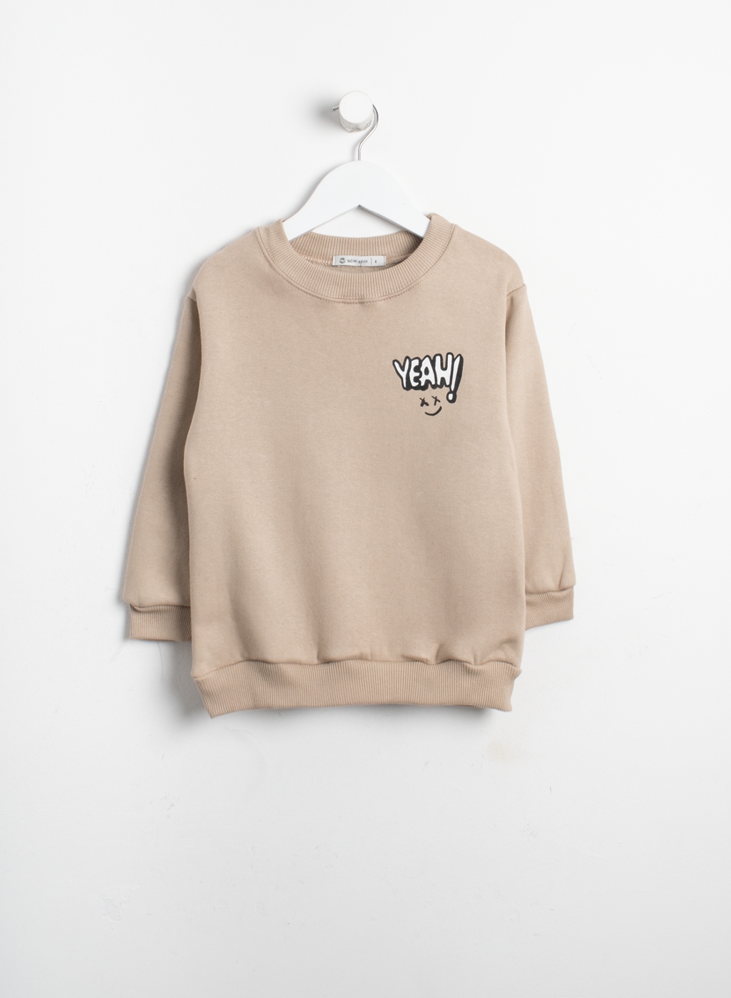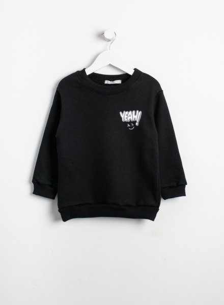 Buzo corte básico de frisa con cuello rendo y pequeña estampa.