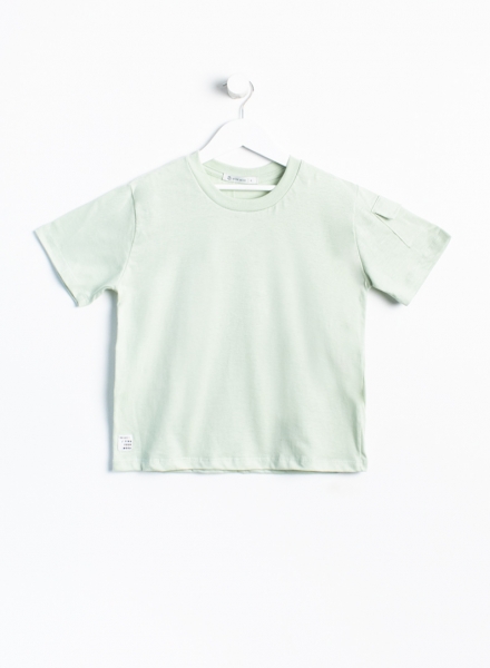 Remera manga corta lisa con bolsillo plaqué en manga.