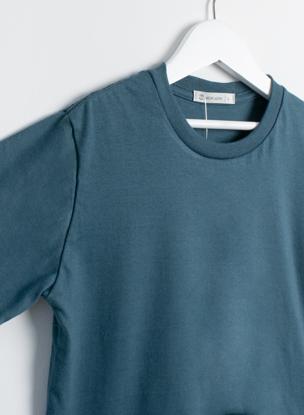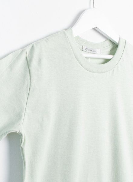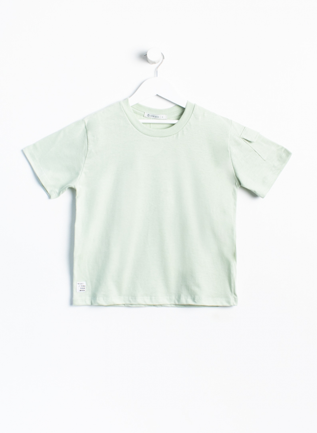 Remera manga corta lisa con bolsillo plaqué en manga. Corte amplio