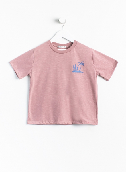 Remera manga corta de jersey con pequeña estampa. Modelo oversize