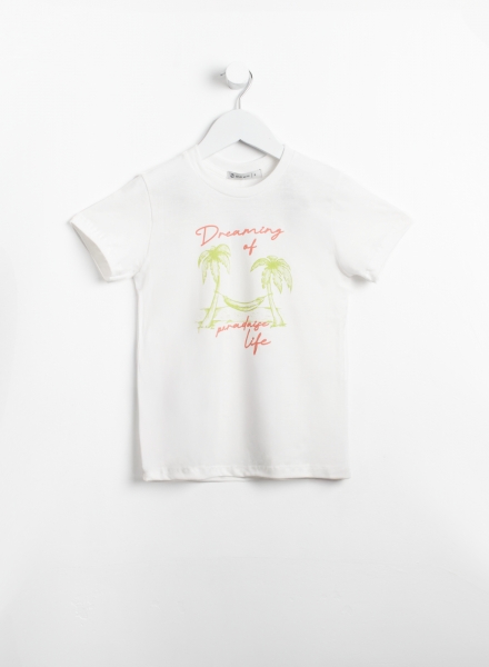 Remera básica de jersey con estampa en la parte frontal y cuello de ribb.