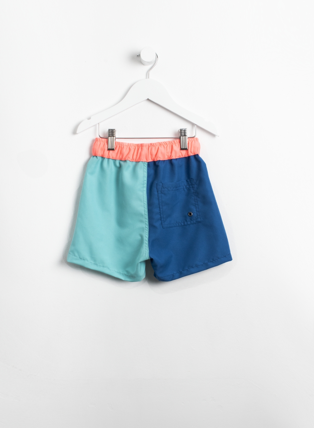 Short de baño de microfibra. Con cintura elastizada con cordón para ajustar y bolsillo trasero.